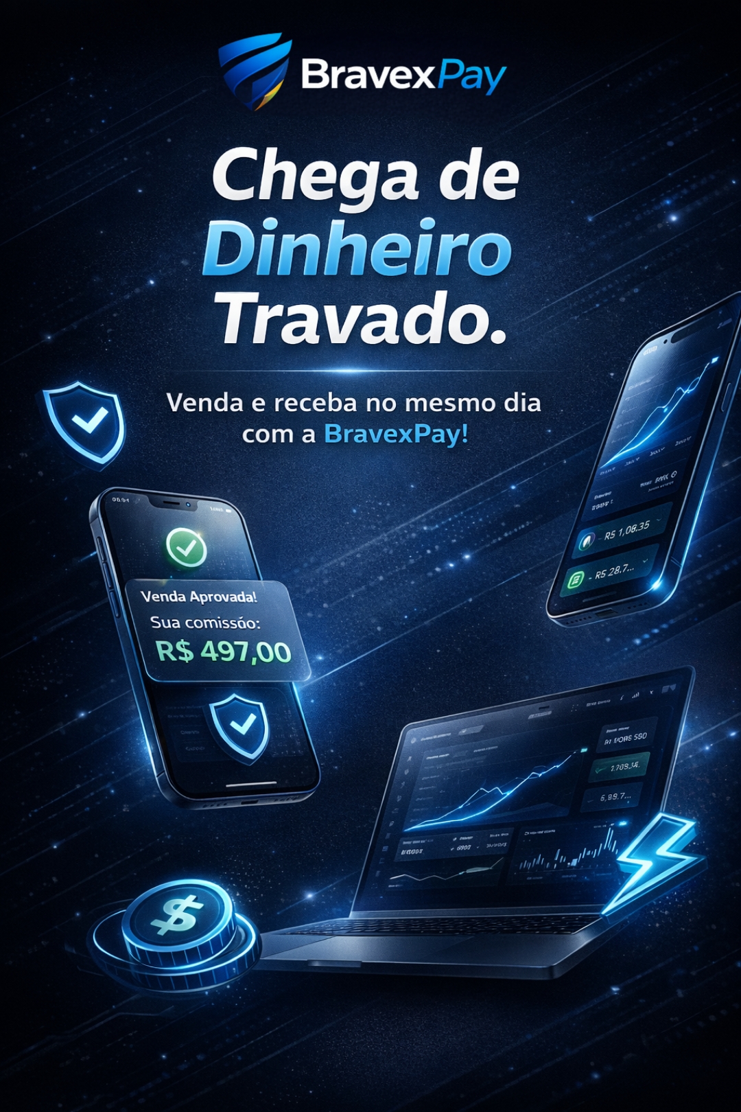 Dê o próximo passo no crescimento do seu negócio online. Nosso gateway oferece estrutura robusta e taxas que fazem sentido. Cada venda é processada com eficiência e fluidez. A escolha certa para quem deseja escalar com consistência.